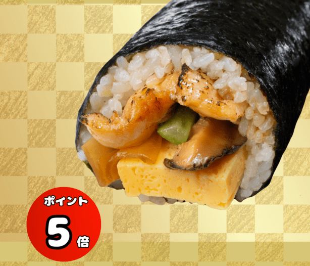 - 脂ののった「金穴子」を煮穴子にし、さらに”炙る”ことで香ばしい恵方巻に仕上げました。